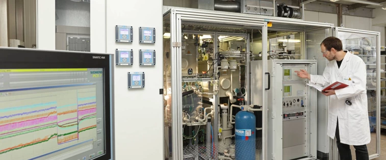 Bild 2: Der weltweit erste und vollständig automatisierte CO2-Elektrolyseur von Siemens erzeugt Kohlenmonoxid und liefert mit Wasserstoff die Hauptnahrung für die Bakterien im Bioreaktor. Quelle: Siemens