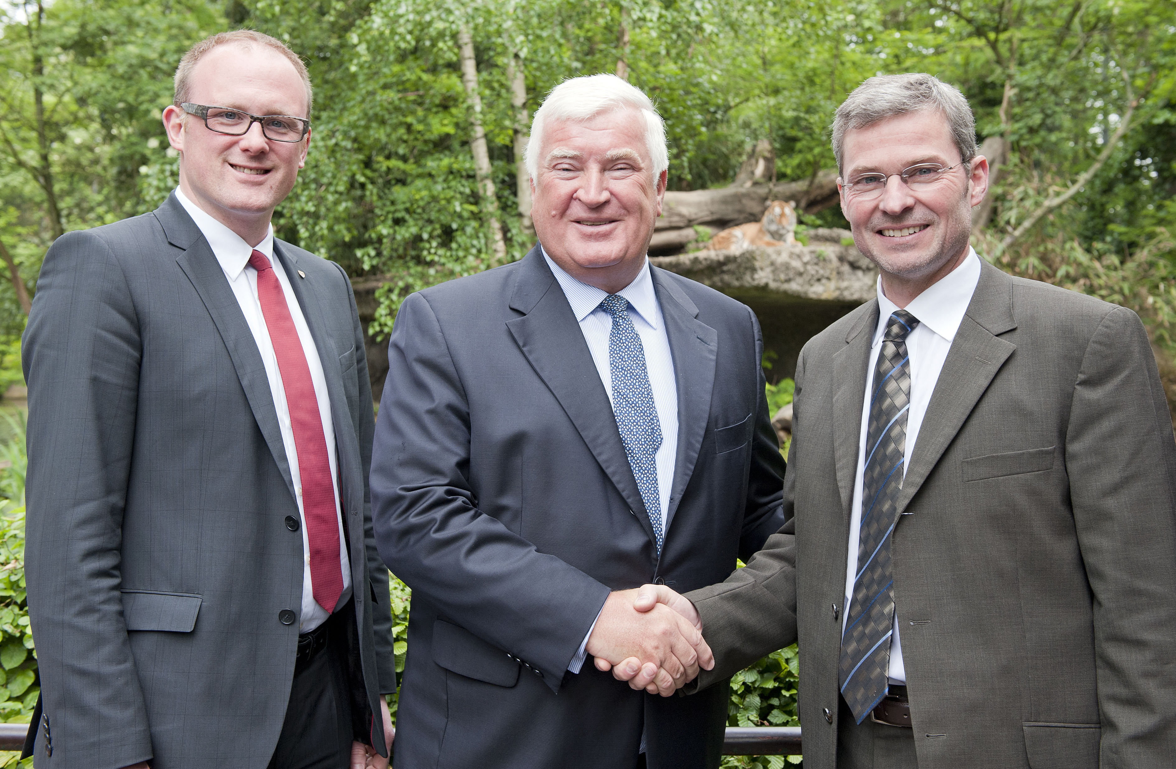 Duisburg/Essen. Evonik und der Zoo Duisburg schließen eine Partnerschaft der besonderen Art: Das Spezialchemieunternehmen wird die Erweiterung des Tigergeheges finanziell unterstützen. Damit verbunden ist die gute Hoffnung, dass schon bald kleine Tigerbabys in Duisburg das Licht der Welt erblicken. Außerdem entsteht direkt neben dem Gehege das neue "Evonik-Zoo-Labor". Einen entsprechenden Vertrag haben Klaus Engel, Vorstandsvorsitzender von Evonik, und Achim Winkler, Direktor des Zoos Duisburg, heute in Anwesenheit von Duisburgs Oberbürgermeister Sören Link und dem Aufsichtsratsvorsitzenden des Zoos Duisburg, Hans-Werner Tomalak, unterschrieben. Engel sagte: "Der Zoo bringt uns die Welt näher und ist ein idealer Lernort, nicht nur für Kinder und Jugendliche."