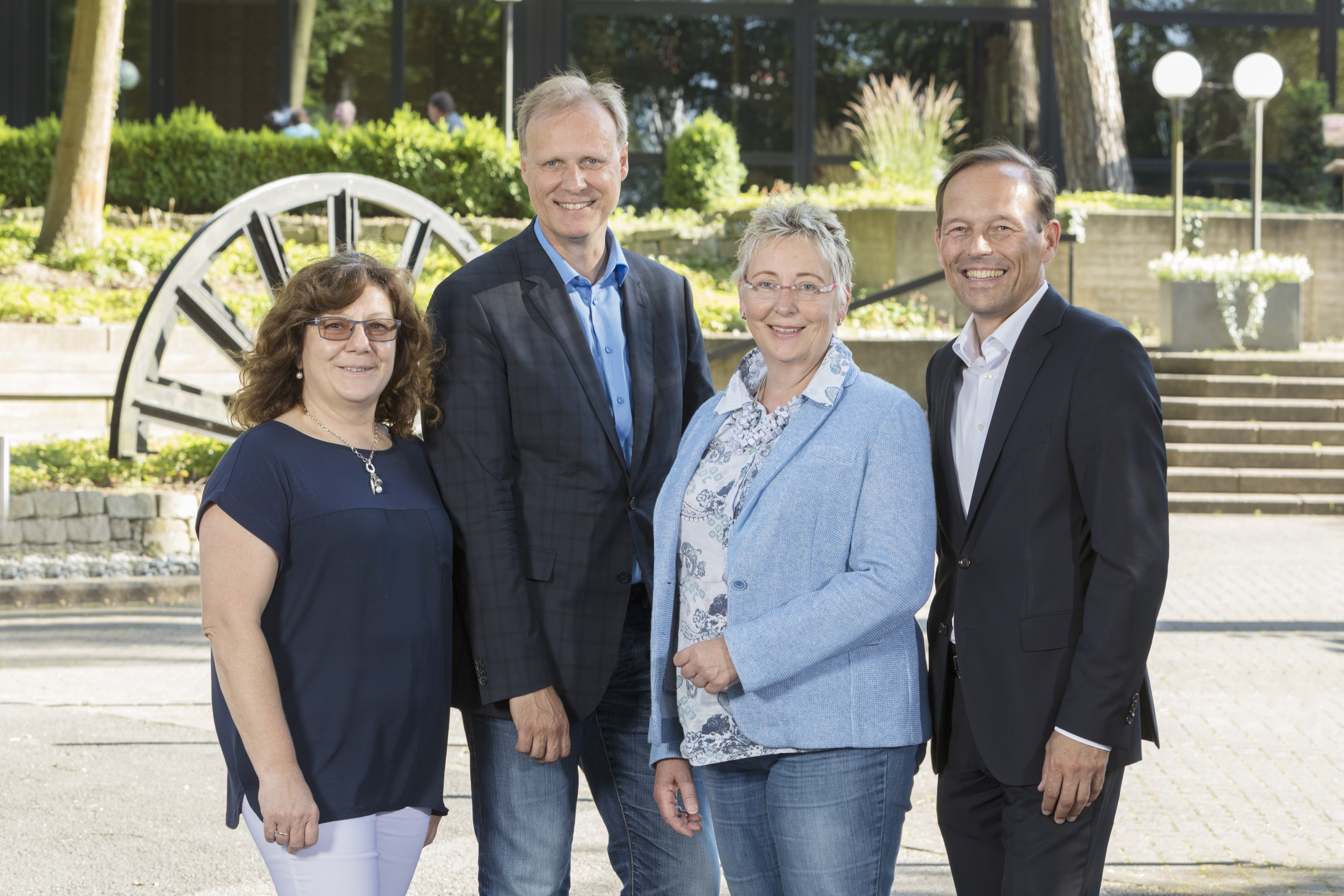 Carmen Fuchs, Martin Albers und Anke Strüber-Hummelt mit Evonik-Arbeitsdirektor und Personalvorstand Thomas Wessel (v.l.n.r.)