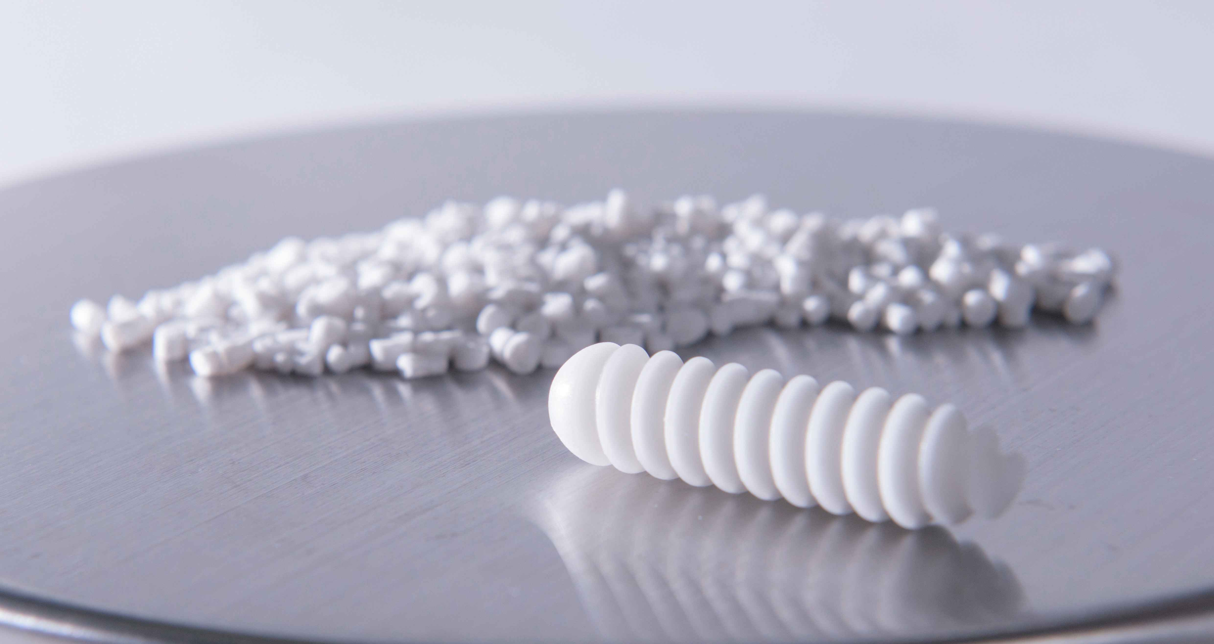 Bild 4: Evonik entwickelt Polymere im Hinblick auf gewünschte Anwendungseigenschaften. Medizinproduktehersteller fertigen daraus Implantate wie beispielsweise Schrauben.