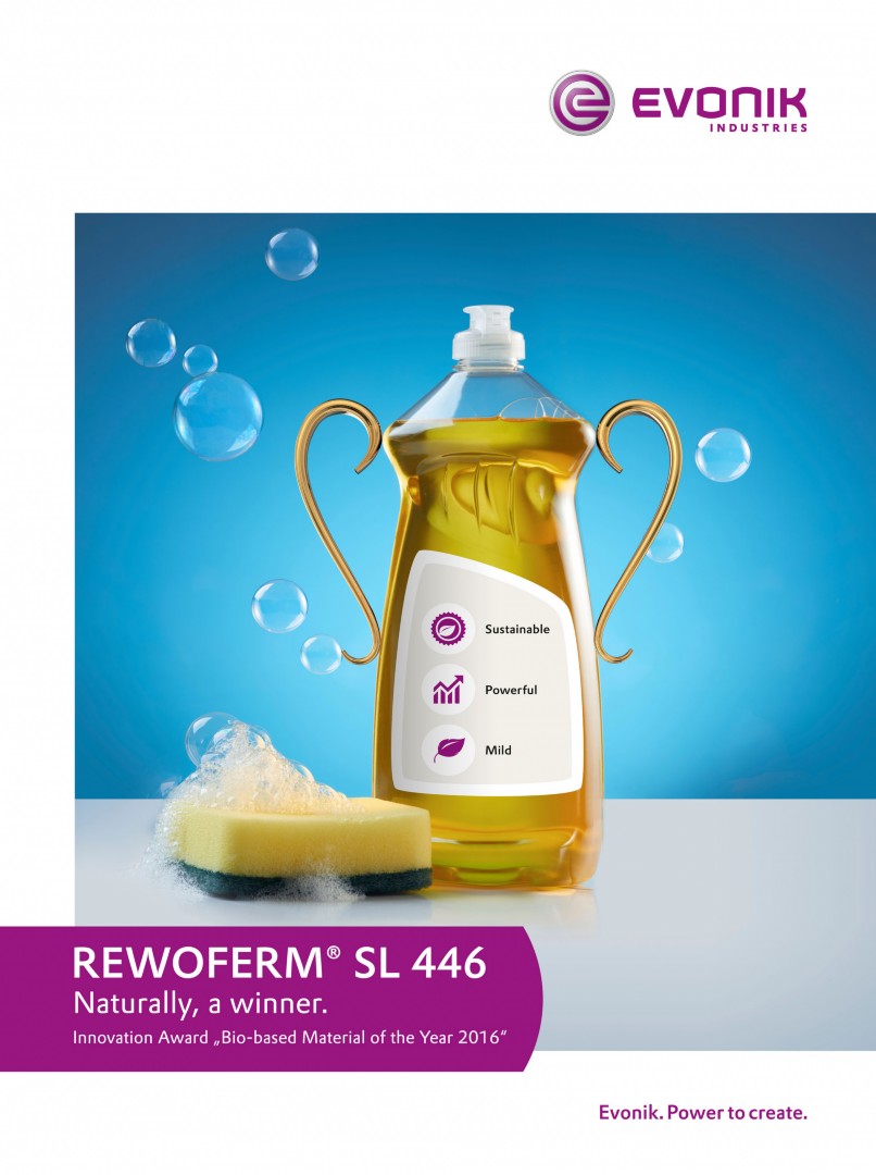 Das Geschäftsgebiet Household Care von Evonik wurde mit dem Preis "Bio-based Material of the Year 2016" ausgezeichnet. Auf der "International Conference for Biobased Materials" wurde das Biotensid REWOFERM® SL 446 für seine herausragenden Eigenschaften prämiert.