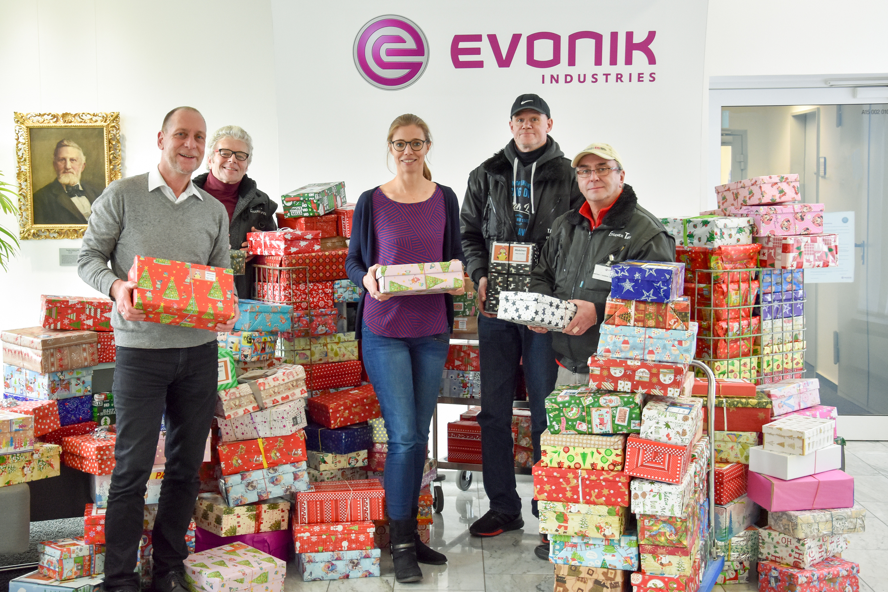 Bücher, Spielzeug und süßes Naschwerk, Babyartikel und Kleidung, Gutscheine und vieles mehr packten die Mitarbeiterinnen und Mitarbeiter von Evonik in Geschenkkartons, um damit Kindern und Jugendlichen, die in unserer Stadt in Not aufwachsen, eine weihnachtliche Freude zu bereiten. Gesammelt wurde für Groß und Klein, vom Baby bis zum Teenager.