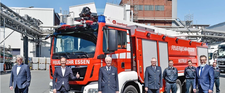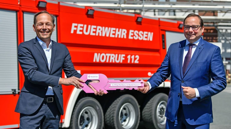 Die offizielle Übergabe an die Feuerwehr und die Stadt Essen fand am Evonik-Standort Essen Goldschmidtstraße im Beisein von OB Thomas Kufen und Thomas Wessel, Personalvorstand und Arbeitsdirektor von Evonik statt.