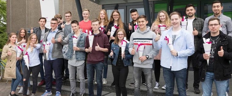 Die künftigen Berufsanfänger bei Evonik in Essen (Foto: Harald Reusmann)