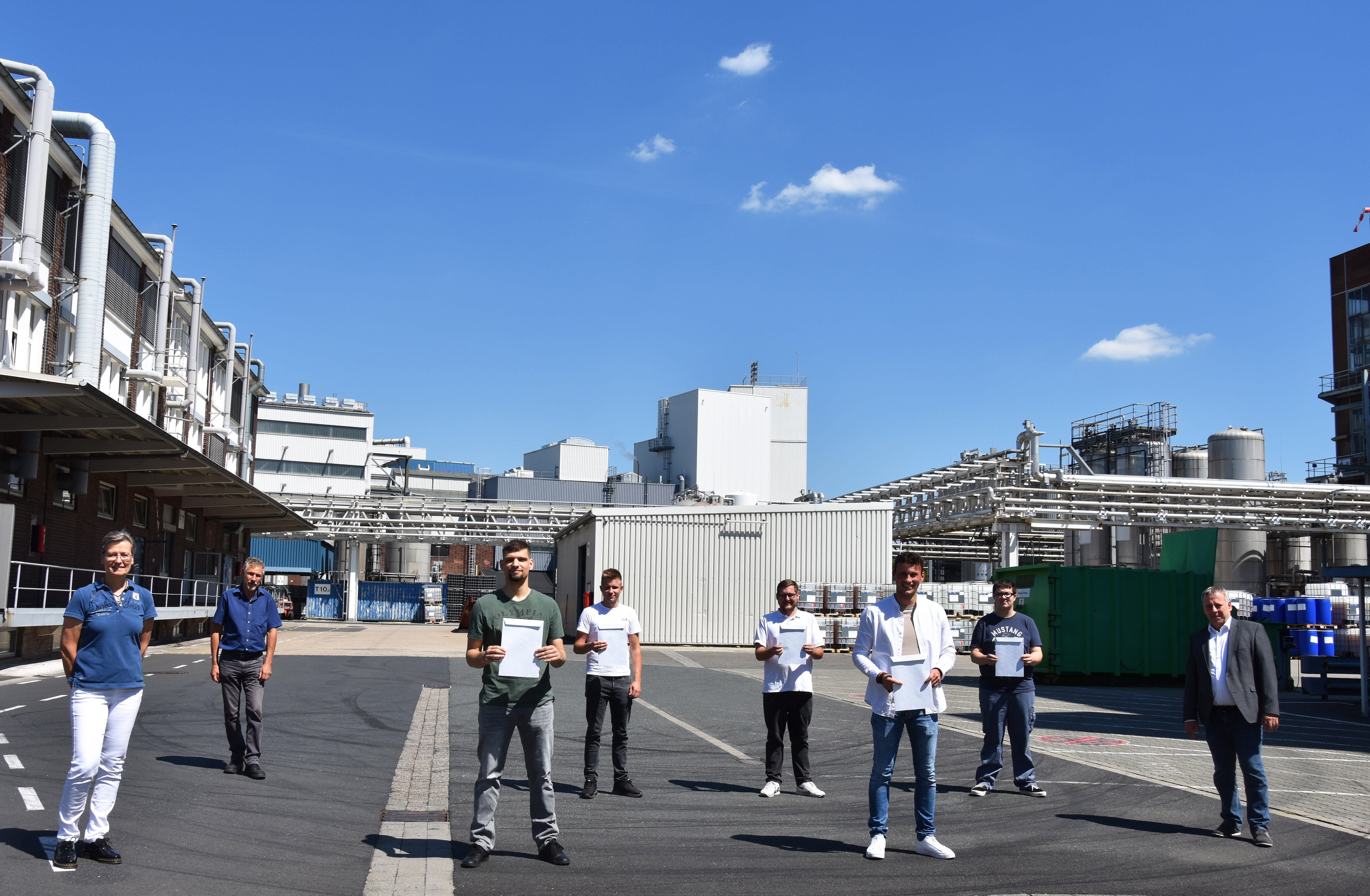 Zu den Absolventen gehören drei Chemikanten, zwei Chemielaboranten, zwei Industriekaufleute und ein Fachlagerist. Sie erhielten jetzt ihre Abschlusszeugnisse und wurden für ihre Leistungen geehrt – im Rahmen kleiner Lossprechungen mit gebührendem Abstand. „Trotz der Einschränkungen durch die Pandemie in den letzten Monaten haben Sie die Ausbildung hervorragend gemeistert. Sie können stolz auf sich sein“, lobte Ausbildungsleiter Volker Kemper die Prüflinge bei der Zeugnisvergabe. Auch in der Corona-Zeit hält Evonik an der Übernahme für erfolgreiche Absolventen fest. „Wir wissen, wie wichtig eine gute und sichere Zukunftsperspektive für die junge Generation ist - gerade auch in schwierigen Zeiten“, so Kemper.