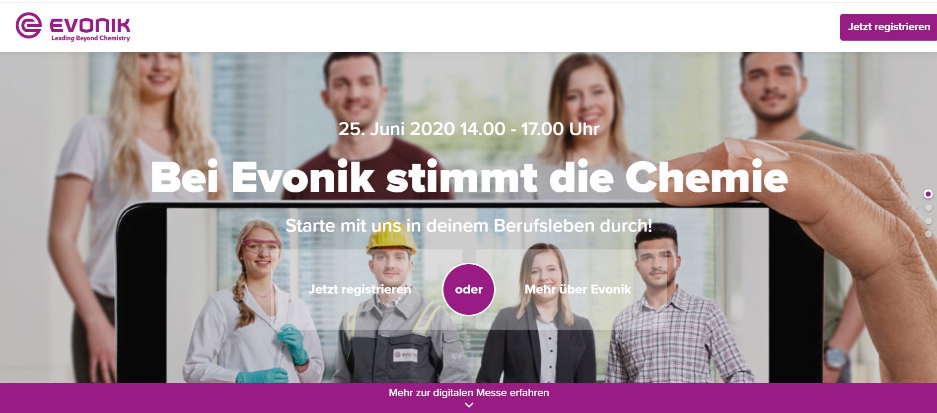 Der Spezialchemiekonzern Evonik wird am 25. Juni erstmals eine digitale Ausbildungsmesse für alle vakanten Ausbildungsplätze in Deutschland veranstalten. „Für uns war es naheliegend, eine digitale Ausbildungsmesse zu organisieren, schließlich sind die Bewerber der aktuellen Generation Z ohnehin viel online unterwegs“, erläutert Caroline Held, Leiterin Ausbildungsmarketing bei Evonik, die Idee hinter dem neuen Angebot.