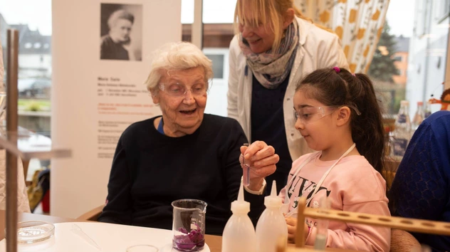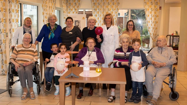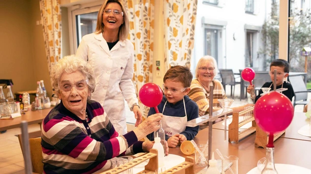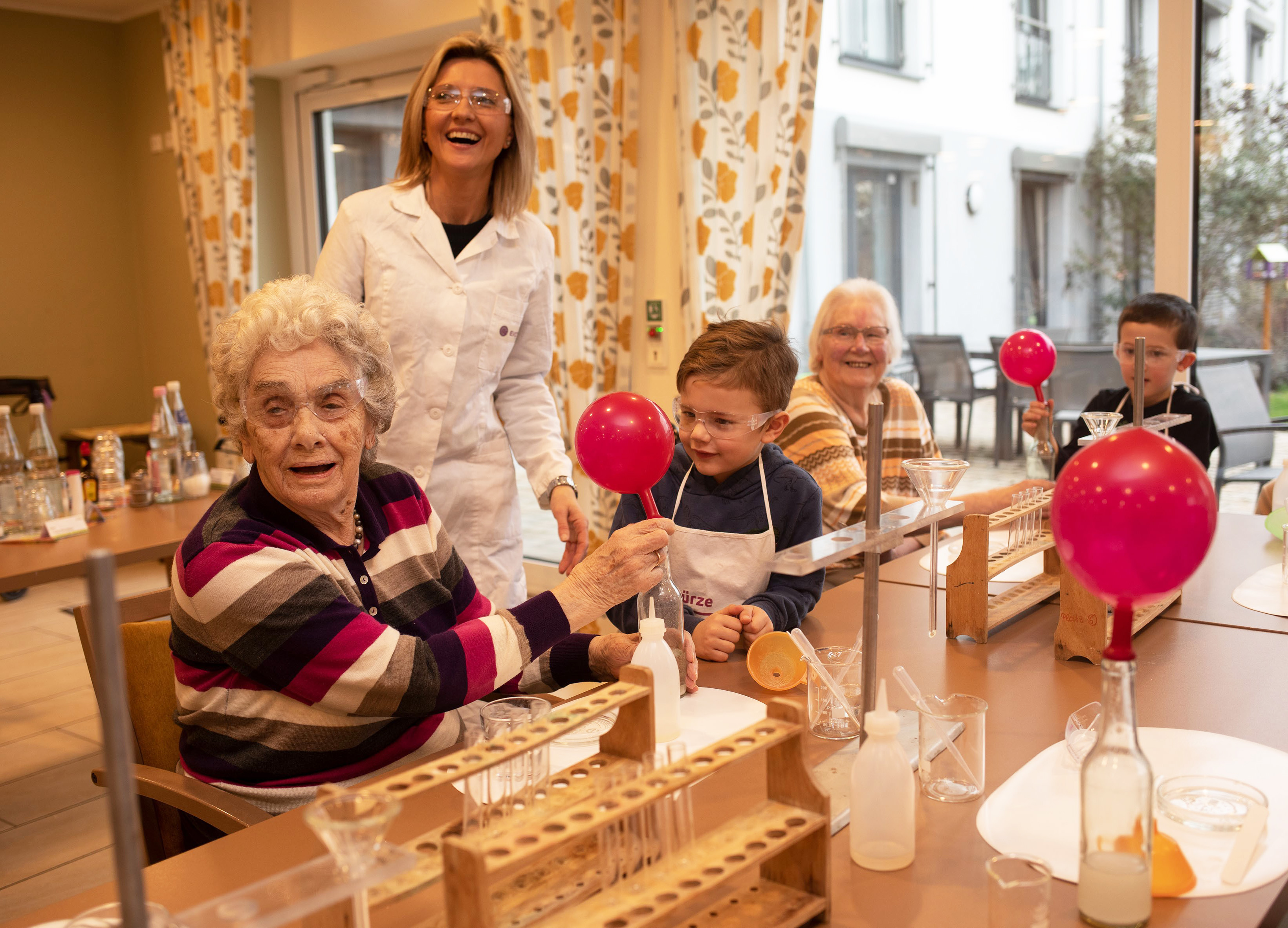 Diesmal machte das Chemielabor einen Ausflug in die Seniorenresidenz Belia. Hier erlebten die Senioren mit Kindern der Kita St. Norbertus die Faszination von Chemie. Unter Anleitung experimentierten die kleinen und großen Forscher zusammen und hatten jede Menge Spaß. Die Idee, das Labor generationenübergreifend zu nutzen, kam von Lukasz Ratajczak, Leiter der Kreta: „Der Austausch zwischen den Generationen ist für alle bereichernd. Beim gemeinsamen Forschen wird deutlich, wie sich Jung und Alt gegenseitig unterstützen und austauschen.“ Sowohl die Kinder als auch die Senioren lernen Neues, erkunden die Welt und helfen sich bei den Versuchen. Die Kinder gehen den Erwachsenen zur Hand und umgekehrt erklären die Senioren den Kleinen Zusammenhänge.
