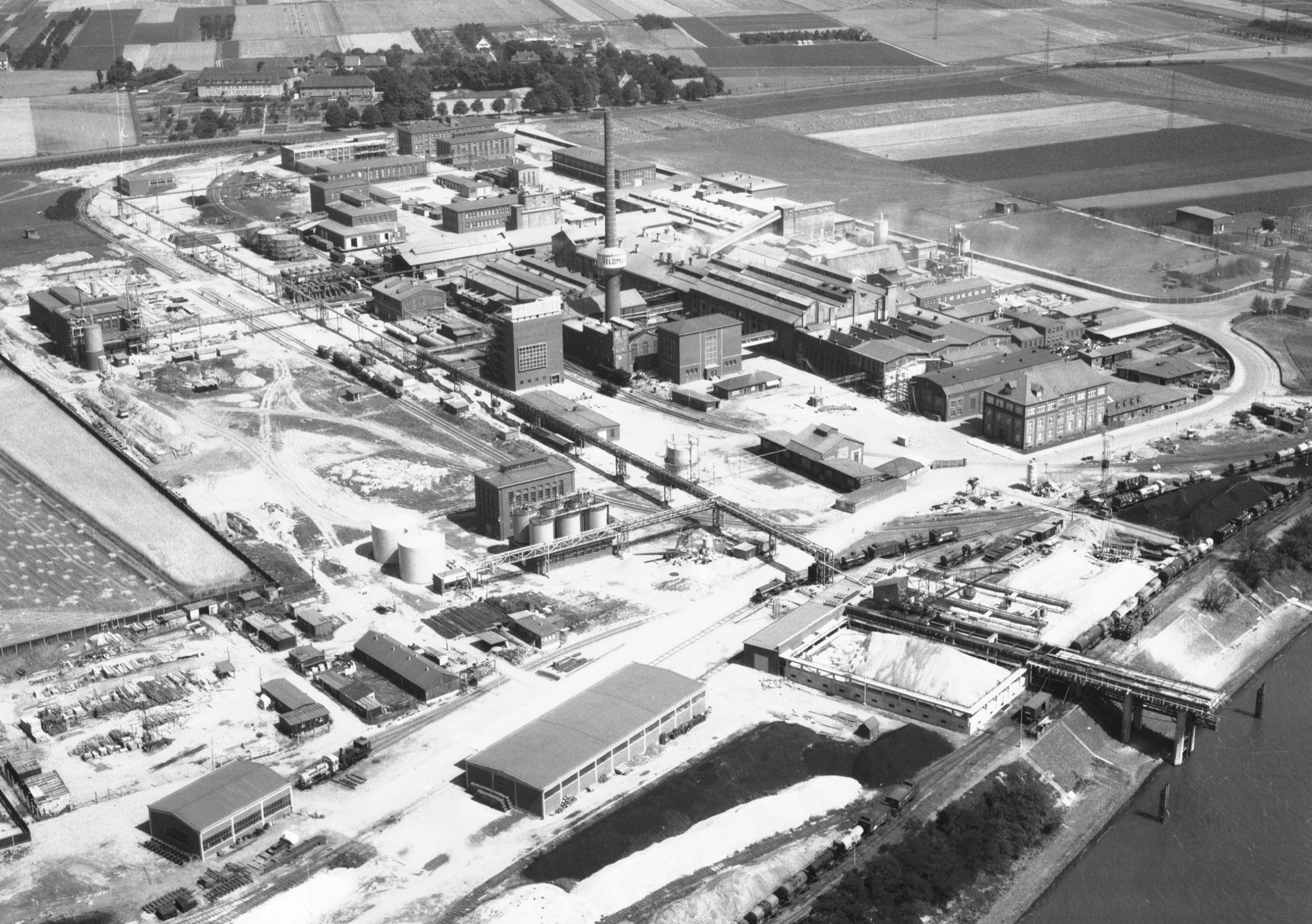 In den ersten Jahren nach dem Weltkrieg waren die Verantwortlichen des Werks in Lülsdorf mit dem hohen Produktbedarf beschäftigt. Von Desinfektionsmitteln bis Edelkorunden war so ziemlich alles gefragt. Die im Krieg zerstörten Anlagen wurden wieder instand gesetzt. Bereits in den frühen 50er Jahren begannen die Arbeiten an Neubauten am Standort. Durch die betriebliche Vergrößerung erhöhten sich die Produktionsmengen. (Teil 9 unserer Serie). Eine für die Weiterentwicklung der Fabrik äußerst bedeutsame Produktpalette stellten die Alkali-Alkoholate dar. Diese Folgeprodukte der Elektrolyse sind Spezialchemikalien, die als Synthese-Hilfsmittel große Bedeutung in der Agro-, Pharma und Nahrungsmittelindustrie erlangten. Aufgrund der gestiegenen Nachfrage nach salzfreien Laugen ersetzte die Firma das veraltete Siemens- Billiter-Diaphragma-Verfahren durch das kostengünstigere Quecksilber-Verfahren. Die Quecksilberleistenzellen wurden bis 1955 in den Elektrolyse-Prozess integriert. Die so hergestellten hochwertigen Laugen durften bei der Einschmelzung aber nicht mit Eisen verunreinigt werden. Daher errichtete das Werk eine neue Anlage, die mit Reinst-Nickel-Apparaturen und Armaturen ausgestattet war. Für die Erzeugung des benötigten Hochdruckdampfs wurde zu dieser Zeit Kohlestaub eingesetzt, weshalb auch ein Kohlestaubbunker erforderlich war. Da die Kosten dieses Verfahrens waren jedoch sehr hoch waren, wich man auf das preisgünstige Heizöl aus und errichtete 1956 dazu ein Heizkraftwerk mit Ölfeuerung. Der Aufschwung im Werk setzte sich weiter fort: Die Kapazität der Salzsäure-Anlage konnte auf nun 10 Tonnen pro Tag gesteigert werden und die Verbesserungsmaßnahmen im Chlorat-Betrieb führten dazu, dass die gesamten Chlorbestände verflüssigt und weiterverkauft werden konnten.