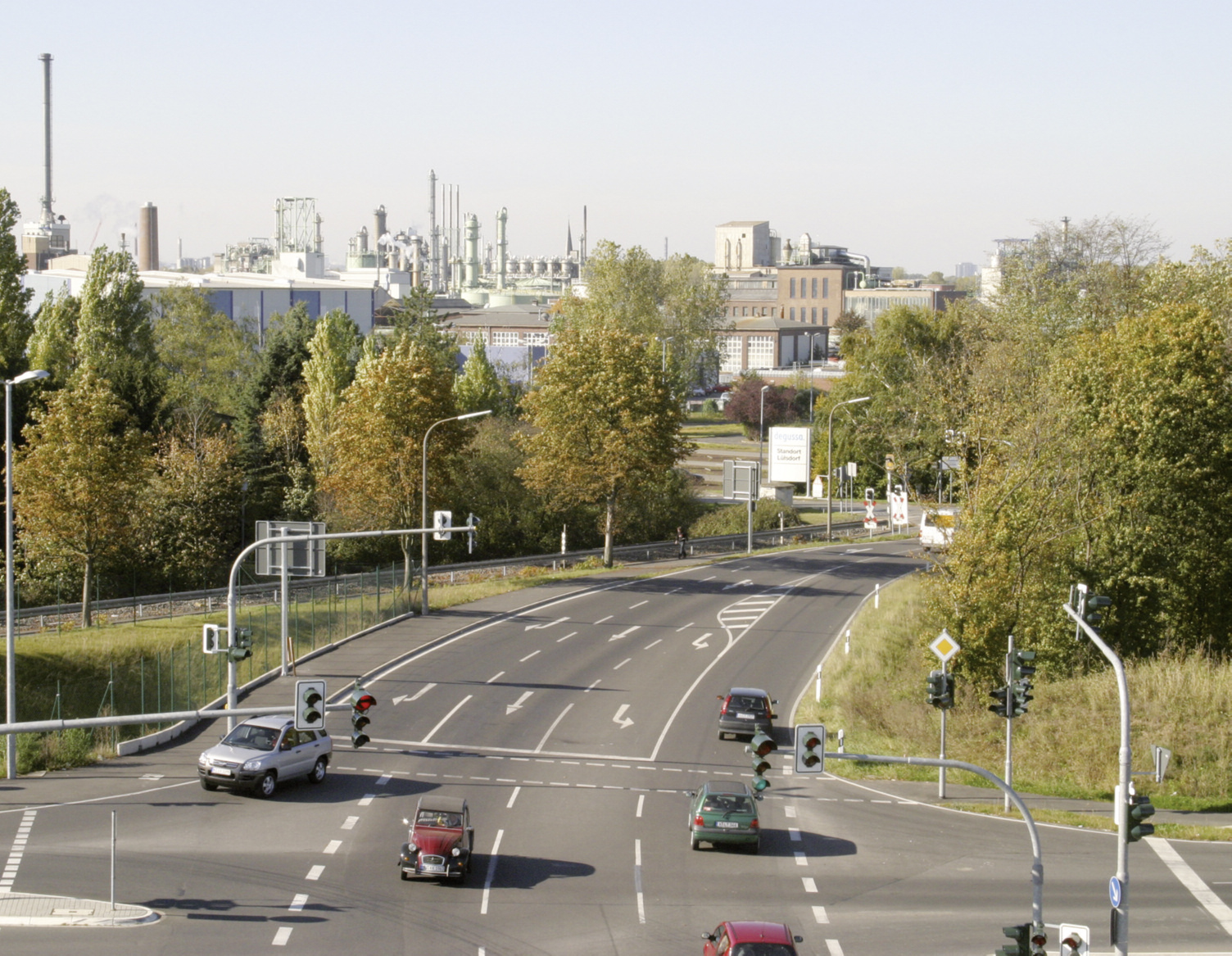Bereits 1920 gab es erste Bestrebungen das Werk mit der dazugehörigen Hafenanlage am Rhein zu verbinden. Der Gierslinger Weg, der Lülsdorf mit Niederkassel verband, den Standort aber vom Fluss trennte, wurde mit steigender Produktion immer stärker frequentiert. Es dauerte aber noch mehr als 30 Jahre bis es dem damaligen Werkleiter Dr. Karl Hass nach mehrmonatigen Verhandlungen mit der Gemeinde gelang, den Bereich des Gierslinger Wegs vor der ehemaligen Hauptpforte aufzukaufen.
