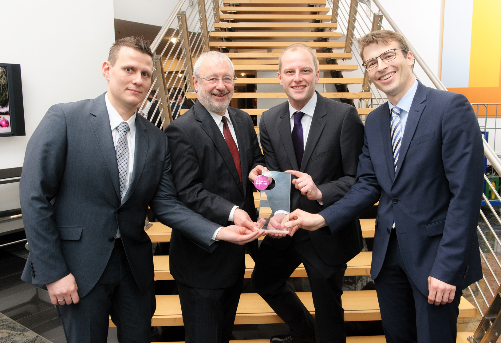 Marl, 2. Januar 2015. Mit neuen Materialien und Prozessen will das Team Electronic Solutions von Coatings & Additives die Displayindustrie revolutionieren: Neue, aus Lösung prozessierbare Metalloxidhalbleiter, die das Herzstück von Dünnschichttransistoren darstellen, sollen nicht nur höhere Auflösungen ermöglichen, sondern auch die Produktionskosten verringern. Dafür überreichte Evonik-Chef Klaus Engel dem Entwicklerteam den Innovationspreis 2014 in der Kategorie „neue Produkte/neue Systemlösungen“.