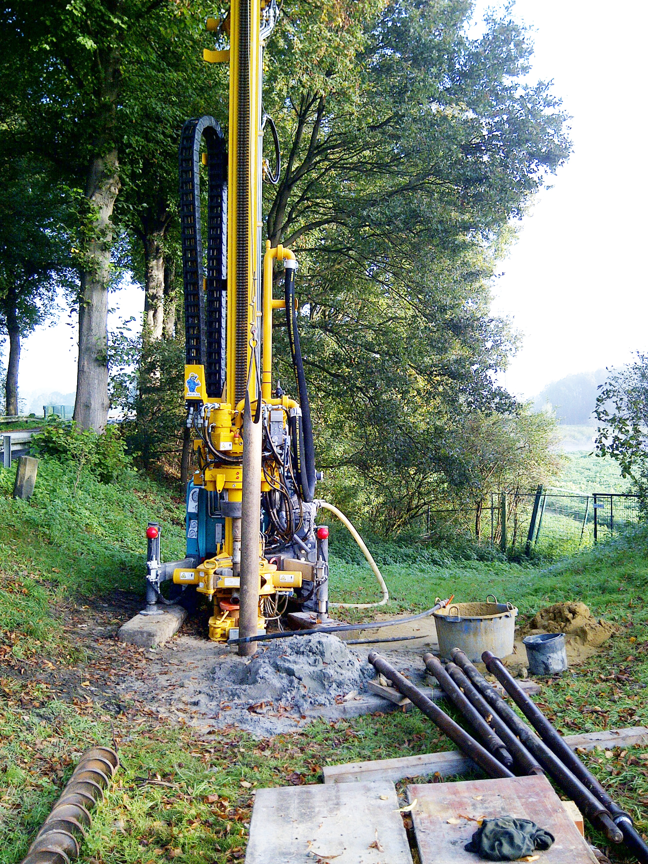 Am 29. September setzte der Bohrkopf an und wurde über ein Gestänge, das Stange um Stange verlängert wurde, bei Drehbewegungen in den Boden gedrückt. Gleichzeitig wurde zur Stützung des Lochs eine schwere Bentonitmischung (biologisch verträgliches Ton-Mais-Gemisch) durch das Rohr zu dem Bohrkopf gedrückt.
