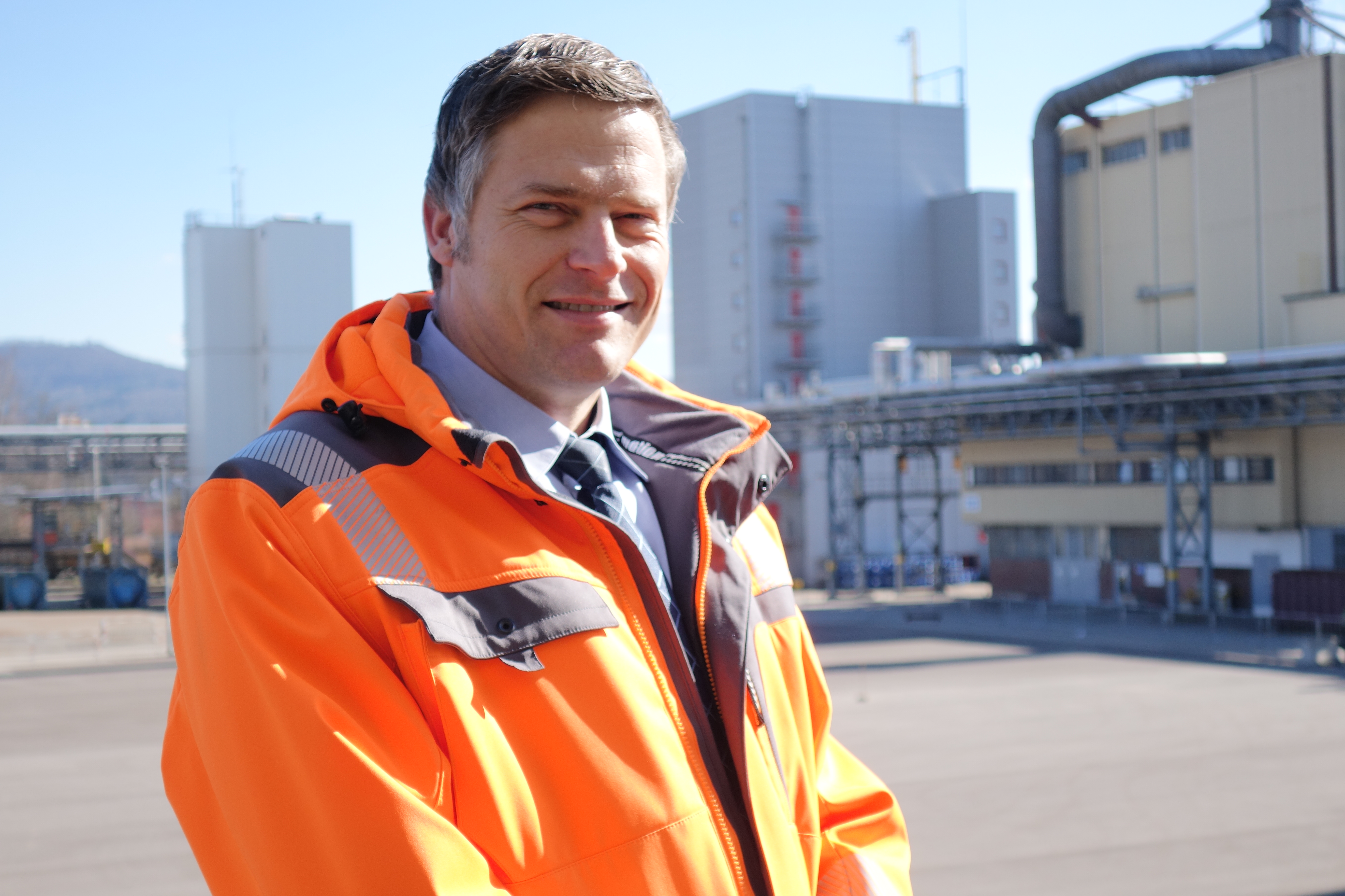 Wenn wir uns den Chemiestandort Rheinfelden als einen Organismus vorstellen, dann ist der Energiebetrieb sein Herz. 41 Mitarbeiter sorgen rund um die Uhr dafür, dass alle Lebensadern der Produktion gespeist werden: mit Wasser, Strom, Druckluft, Wärme und Kälte. „Hier am Standort produzieren wir Spezialchemie für die Lack- und Elektronikindustrie, den Bautenschutz oder Anwendungen im Auto“, erklärt Chemieingenieur Dr. Stefan Rumpel, der den Energiebetrieb seit 2014 leitet. „All das benötigt Energie – und die muss permanent verfügbar sein. Das schafft unser Betrieb nur durch das eingespielte Team von hochqualifizierten Kollegen.“ Hinzu kommt die Versorgung der Gebäude und Infrastruktureinrichtungen für den Standort, der mit seinen rund 1.200 Mitarbeitern einer kleinen Stadt in der Stadt gleicht.