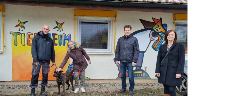 Die Spende wird auch hier als Segen empfunden. „Das ist mindestens so schön wie Weihnachten. Wir sind sehr dankbar, denn wir platzen inzwischen aus allen Nähten. Nun können wir im Frühjahr die dringend notwendige Erweiterung des Gebäudes angehen“, freut sich Hannelore Nuß, engagierte Leiterin des Rheinfelder Tierheims. Hündin Shiva ist inzwischen vom Gassi gehen mit dem freiwilligen Helfer Thomas Heinzelmann zurück und darf mit auf das abschließende Gruppenfoto.