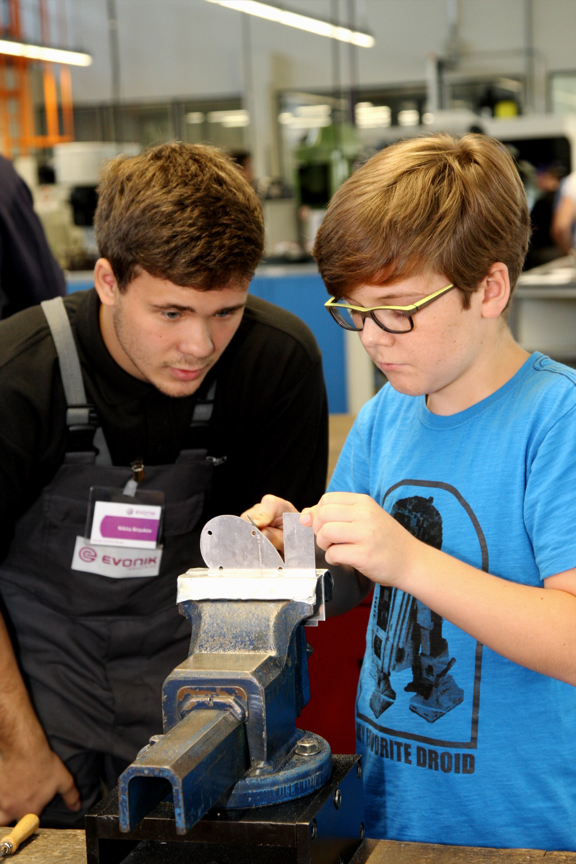 Neben den vielen Mitmach-Aktionen konnten sich die Besucher auch einen Überblick über die Ausbildungsmöglichkeiten im kaufmännischen Bereich sowie über Schülerpraktika verschaffen. Insgesamt absolvieren im Bildungscenter Rheinland von Evonik rund 150 Azubis in drei Lehrjahren ihre Ausbildung in naturwissenschaftlichen, technischen und kaufmännischen Berufsfeldern. Angeboten werden die Ausbildungsberufe Chemikant, Chemielaborant, Elektroniker für Automatisierungstechnik, Industriemechaniker, Anlagenmechaniker, Kauffrau/-mann für Büromanagement sowie Fachlagerist.