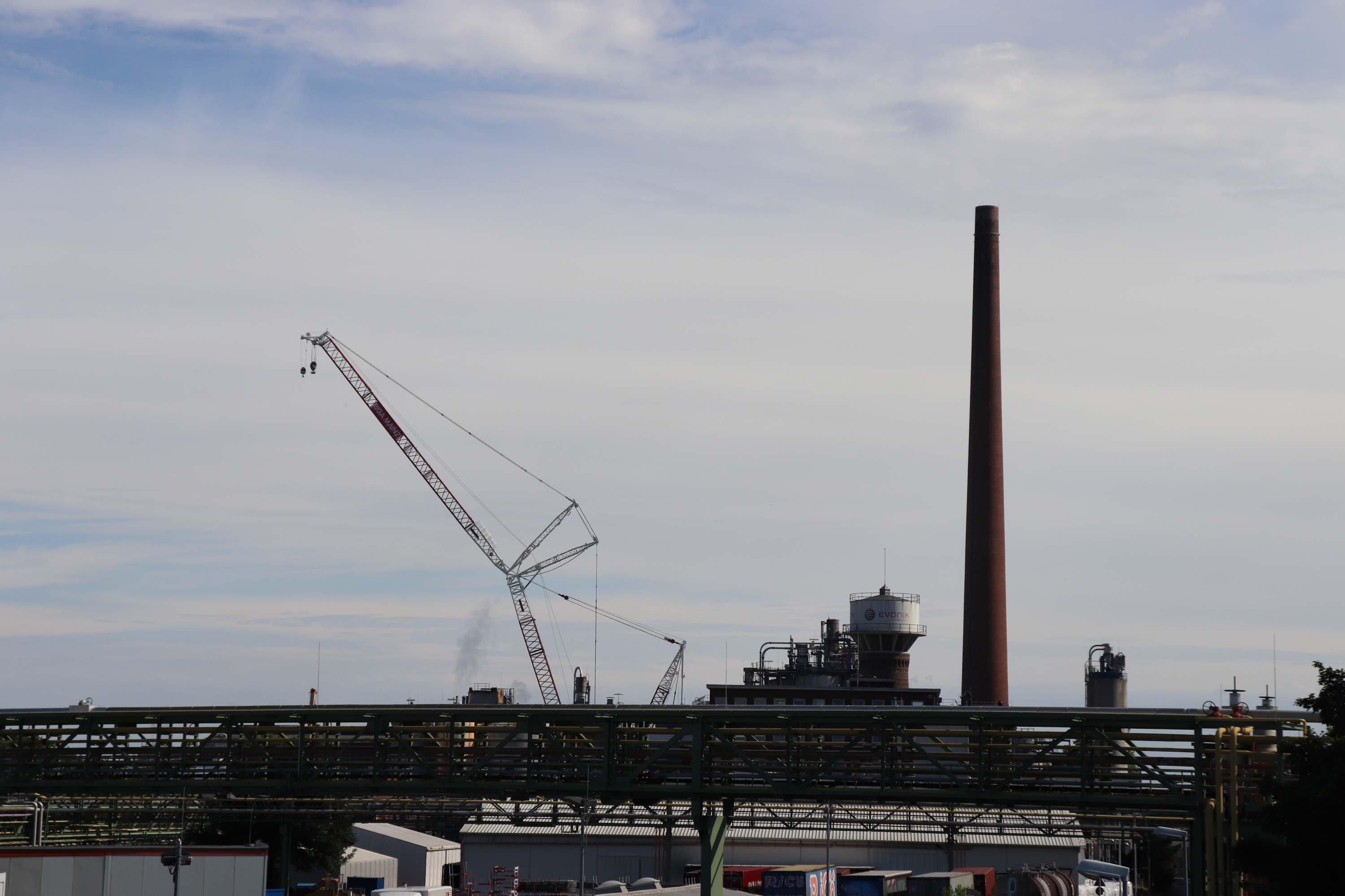 Ein 95 Meter hoher Raupenkran steht bis Ende 2024 am Evonik-Standort Wesseling. Dieser wird verschiedene Aufgaben im Rahmen eines großen Modernisierungsprojektes unserer Silica-Produktion übernehmen. Evonik investiert einen zweistelligen Millionen Euro Betrag in dieses Projekt.