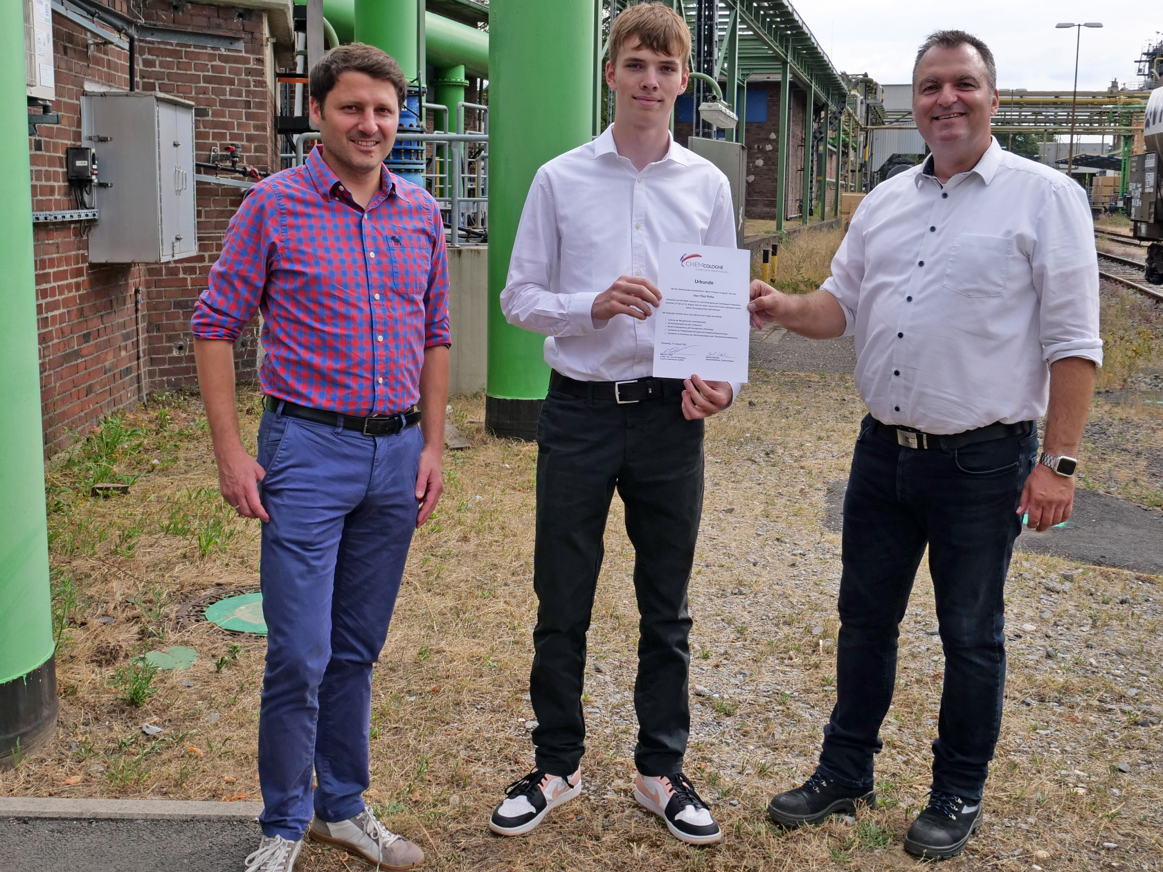Paul Rohe aus Solingen übernahm für einen Tag große Verantwortung: Er leitete im Rahmen der ChemCologne-Aktion „Meine Position ist spitze“ die Ver- und Entsorgung am Evonik-Standort Wesseling. Ein Bereich, ohne den die Produktion von Spezialchemie nicht möglich ist. Marcus Killat, Leiter der Ver- und Entsorgung, unterstützt die Kampagne bereits zum zweiten Mal. Für ihn ist „Meine Position ist spitze“ mehr als ein normales Tagespraktikum. „Hier können Schüler wie Paul in ein internationales Unternehmen reinschnuppern und direkt einen Chefposten übernehmen. Ein riesiger Vorteil, denn in der Schule wird den Schülerinnen und Schülern nicht beigebracht, was es bedeutet, Verantwortung im beruflichen Umfeld zu übernehmen.“