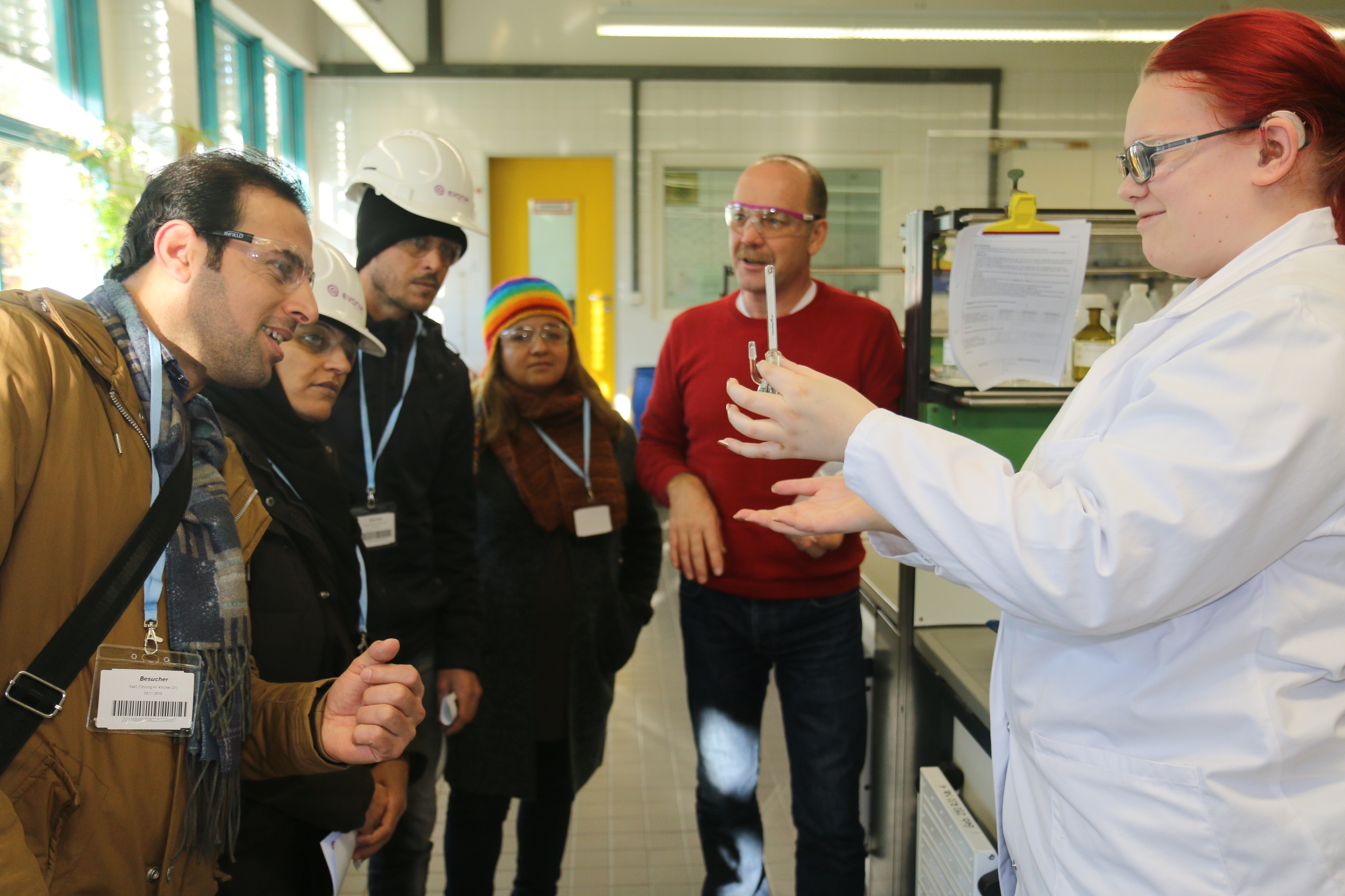 Ende November besuchten 17 Teilnehmer des hessischen Landesprogramms „MitSprache – Deutsch4U“ den Industriepark Wolfgang. Bei einem Rundgang durch die Evonik-Ausbildung gewannen die Flüchtlinge aus Syrien, Irak, Iran und Somalia einen Überblick über die verschiedenen Ausbildungsmöglichkeiten des Unternehmens.