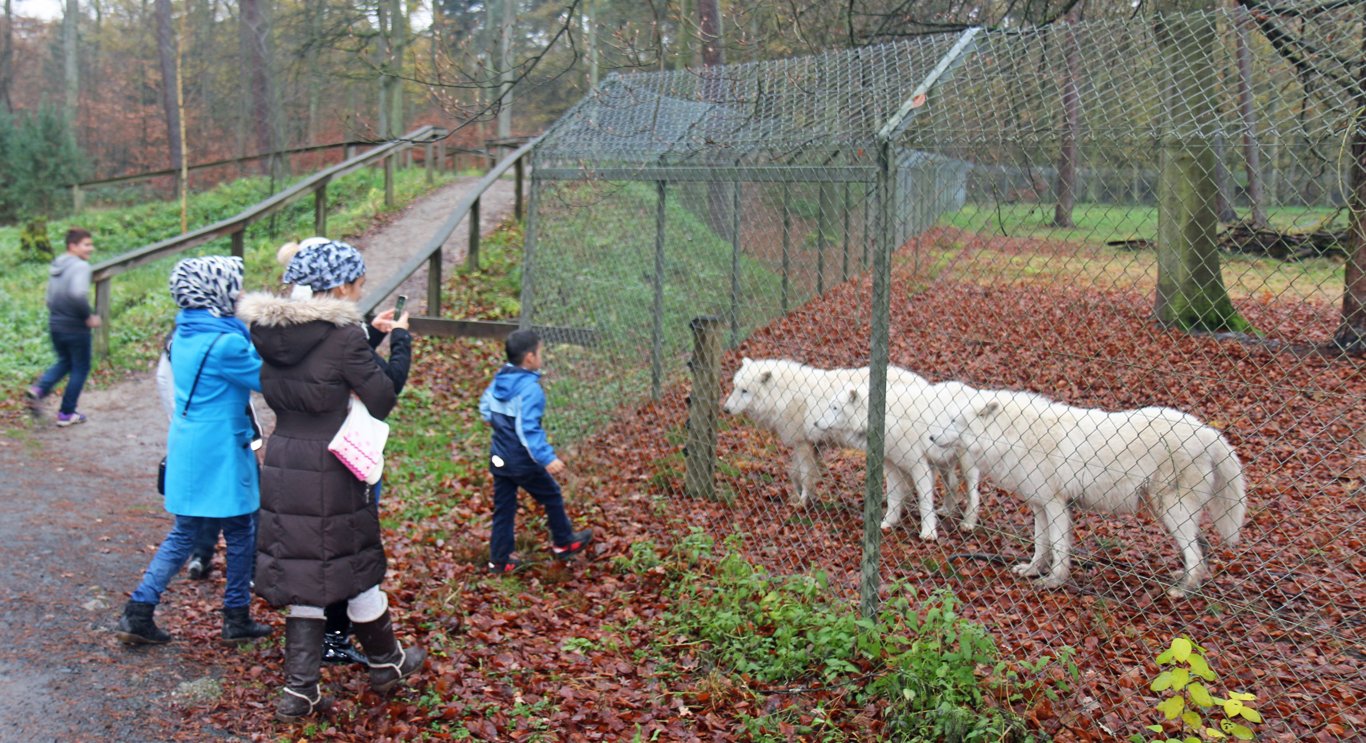 Auf einem langen Spaziergang durch den Park sehen die Besucher, die aktuell in der kommunalen Unterkunft „Sportsfield Housing“ leben, neben Ziegen, Kaninchen, Wildschweinen und Rehen auch Wildkatzen, Elche und weiße Polarwölfe. Vor allem die kleinen Besucher sind von den großen weißen Tieren begeistert.