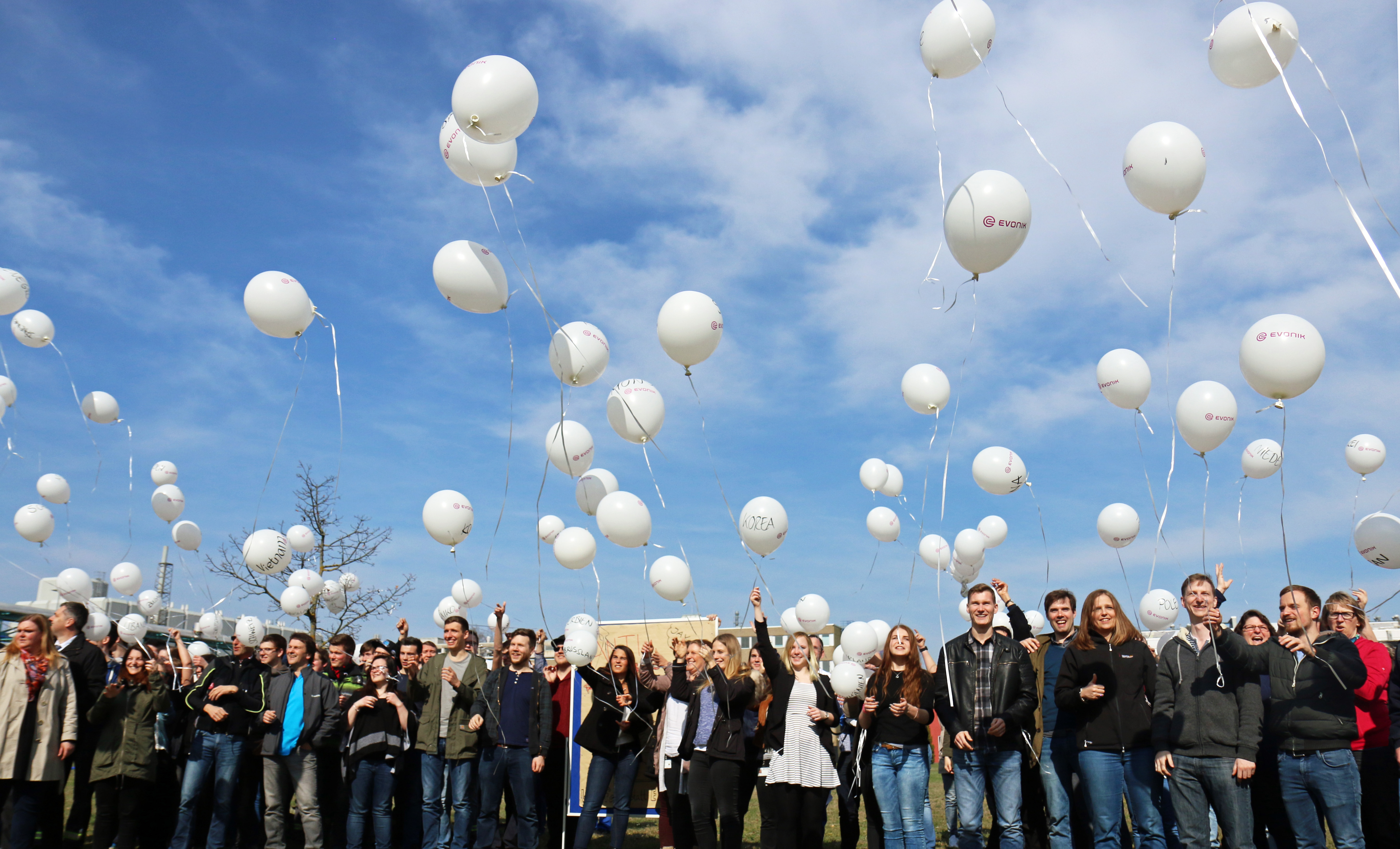 Hanau. Freitagnachmittag, 14 Uhr: Über dem Himmel des Industrieparks steigen unter lautem Beifall rund 150 Ballons in die Luft. Auf jedem Ballon steht der Name eines der 51 Länder aus denen die Mitarbeiter von Evonik am Standort Hanau stammen.