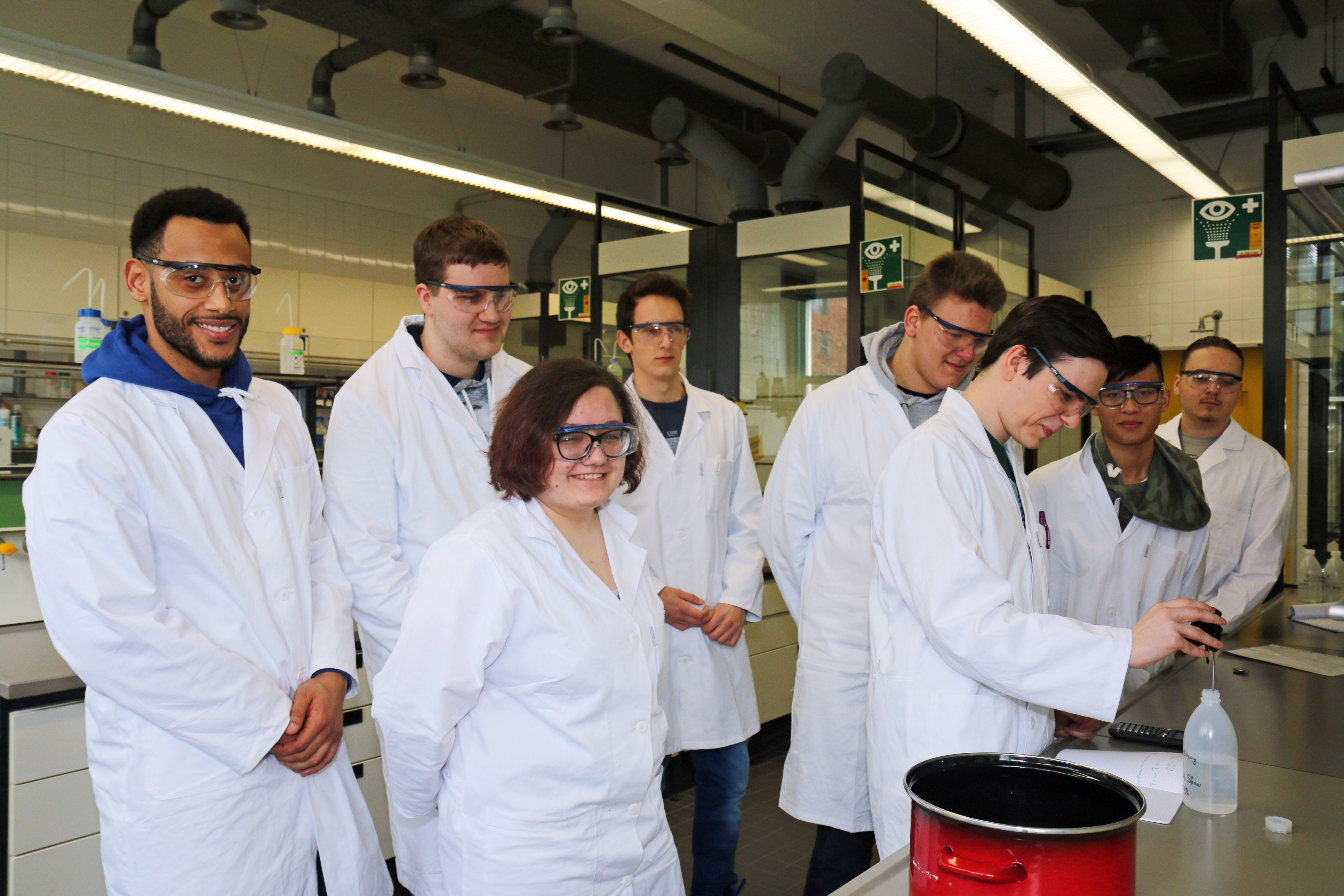 Von montags bis mittwochs sind die jungen Leute bei Evonik im Industriepark. Den Rest der Woche verbringen die Teilnehmer im Bildungswerk „Gesellschaft für Wirtschaftskunde“ (GfW), wo ihr Schulwissen aufgefrischt wird.
