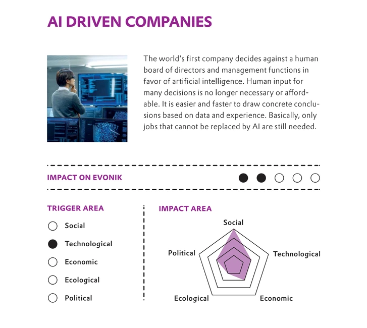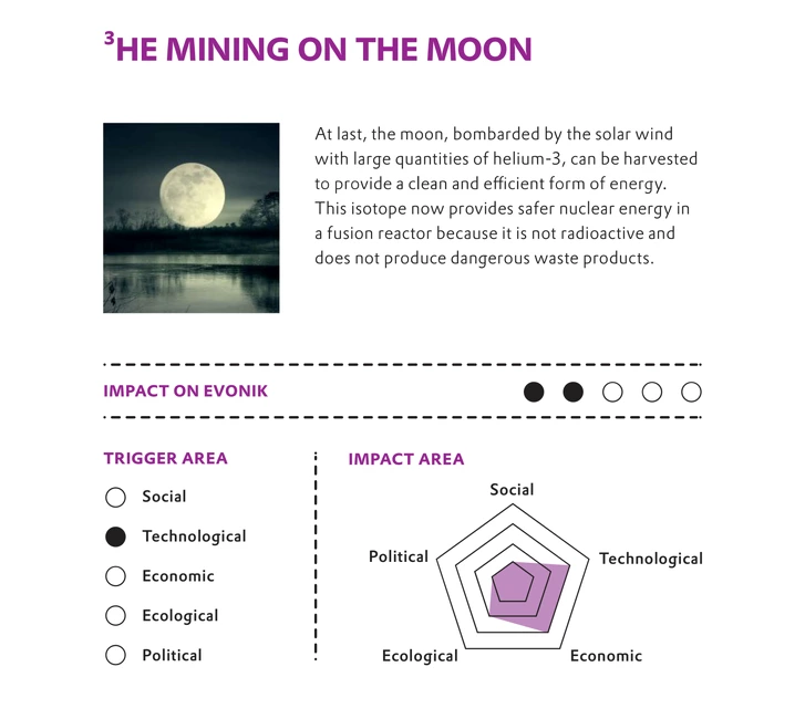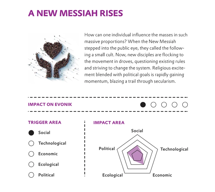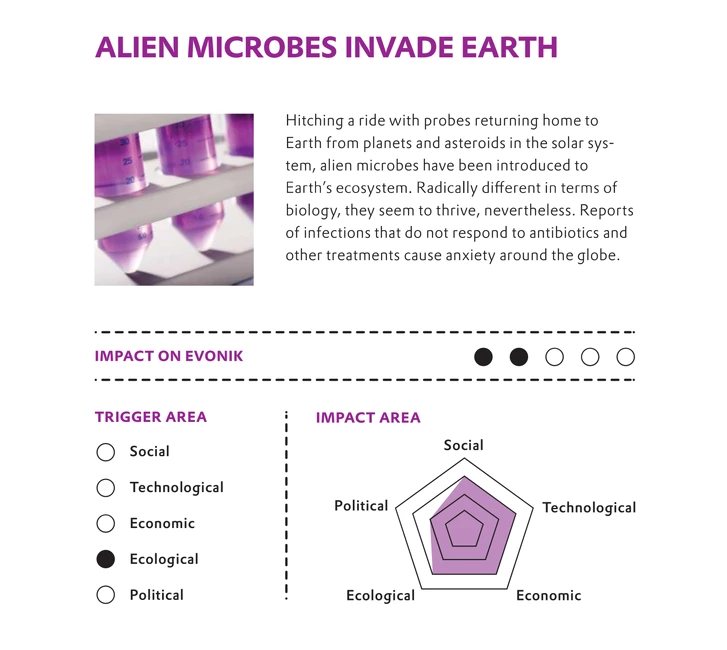 Evonik Foresight and Group Controlling developed 95 so-called wild cards which describe low-probability, high impact events.