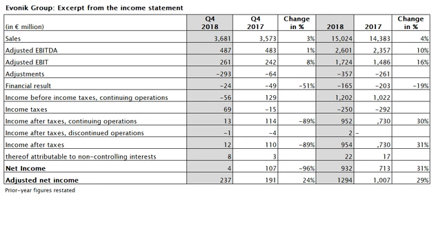 Sales rose 4 percent to €15 billion. The adjusted EBITDA margin climbed to 17.3 percent, about 1 percentage point higher than in 2017, taking Evonik a significant step towards its mid-term goal of earning a margin between 18 percent and 20 percent.