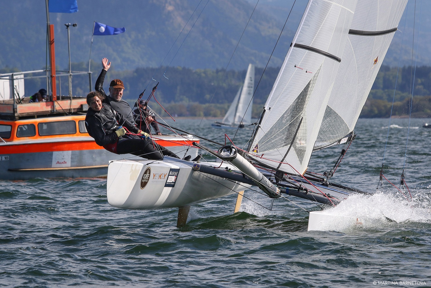 The SpeedFoiler™ belongs to the new generation of foiling catamarans. The extreme light weight and the innovative design of the sails, hull and attachments allow these boats to fly over the water. "This is a fantastic experience and makes it extremely fun. And on top on that, you have a lot of spectacular pictures, and excited spectators and journalists all over the world," said the ten-time World Champion Roland Gaebler. These boats demand a high level of athletic and artistic abilities from the sailing teams.